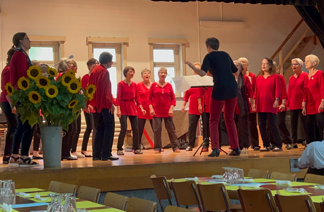 Aus dem ursprünglich geplanten dreitägigen Gesangsfest beider Basel wurde leider nichts. Dafür hat der kantonale Chorverband CVbB einen einmaligen und unvergesslichen Sängertreff in Arlesheim organisiert. An diesem Event hat auch unserer Frauchchor teilgenommen. Bereits früh am Morgen haben sich 22 Sängerinnen auf den kurzen Weg von Muttenz nach Arlesheim gemacht, um rechtzeitig einzusingen und dann um 10.15 Uhr aufzutreten. Unser Auftritt ist gelungen und die Performance hat alle glücklich gestimmt. Gemeinsam haben wir vielen Chören zugehört, zusammen Mittag gegessen und einfach die Stimmung genossen. Hin und wieder wurde heimlich mitgesummt oder gesungen und in Erinnerungen geschwelgt.