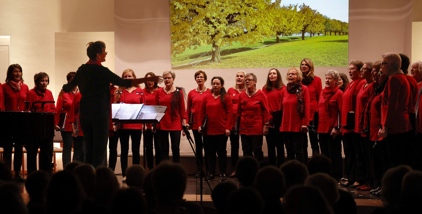 Am 19./20. November 2022 ist der Frauenchor nach dreieinhalb Jahren Konzertpause wieder aufgetreten. Das abwechslungsreiche Programm beinhaltete Lieder von der Liebe und vom Leben in fünf Sprachen. Mit drei «Canti Italiani», gefolgt von «Chansons françaises» hat das Konzert Fahrt aufgenommen. Der französische Teil wurde abgeschlossen mit einem Volkslied, vorgetragen durch den Projektchor (kleinere Formation des Gesamtchors) und dem Sologesang von Barbara Wäldeles Interpretation der weltbekannten Lieder «La vie en rose» und «Sous le ciel de Paris». Um dem Cocktail noch mehr Pfiff zu verleihen, folgten die Evergreens «You Raise Me Up» und «Can’t Help Falling In Love». Es kam ein weiterer Projektchor-Auftritt mit einem isländischen Lied, welches sowohl in Originalsprache als auch in deutscher Sprache gesungen wurde. Mit «Sound Of Silence» wurde ein unsterblicher Song zum Besten gegeben. Den fulminanten Abschluss bildeten die bekannten Lieder «Spanish Lady» und «Die Rose/The Rose», gesungen von Chor und Solistin. Mit den beiden Zugaben «Halleluja» und einem stillen harmonischen Gutnacht-Lied war der Cocktail ausgetrunken.